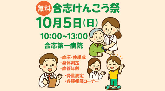 合志第一病院では、地域の皆さまの健康づくりを応援するため、初めての「けんこう祭」を開催いたします。