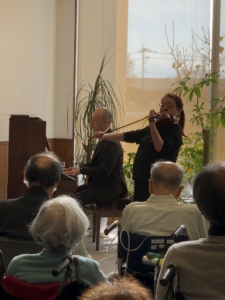 当日は、板井佳代先生(ヴァイオリン)、馬場祐一郎先生(ピアノ)による演奏に加え、管弦楽団(ヴァイオリン、チェロ、クラリネット)によるアンサンブルが披露され、美しい音色が会場全体に響き渡りました。